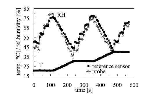 圖2.此處使用的微探針和作為濕度和溫度函數的參考傳感器的相對濕度測量值的比較。
