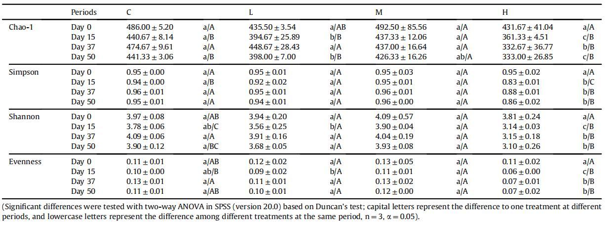 表1不同時期對照和SPC處理微生物群落的α多樣性分析。