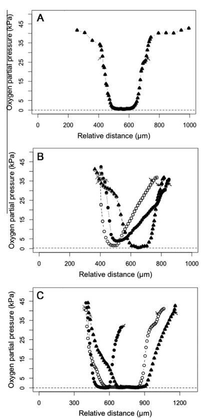 圖2。臺灣褐飛虱腸道系統(tǒng)的軸向氧分布。氧氣數(shù)據(jù)記錄在一個腸道隔室的中心。剖面圖上的每個點代表五次單獨測量的平均值±SE。