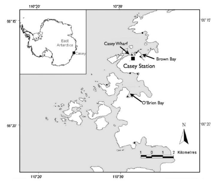 圖1南極洲凱西站凱西碼頭、布朗灣和奧布萊恩灣三個(gè)現(xiàn)場的位置