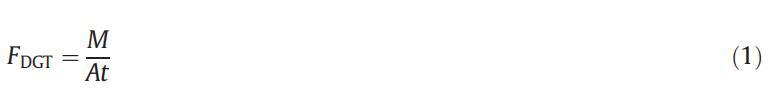 DGT是一種被動取樣技術,用于測量分析物的不穩定部分(Zhang等人2014;Zhang和Davison 1995)。同時,在二維水平(2D)上進行高分辨率DGT測量,可以靈敏地反映溶液濃度和固相再補給的局部變化(丁等人2015;桑特納等人2015)。為此,使用厚度為10至100μm的薄擴散層,DGT測量通常解釋為時間平均通量(μg-cm)?2秒?1)(Santner等人,2015)如式(1)所示: