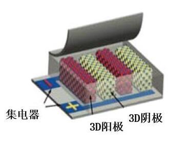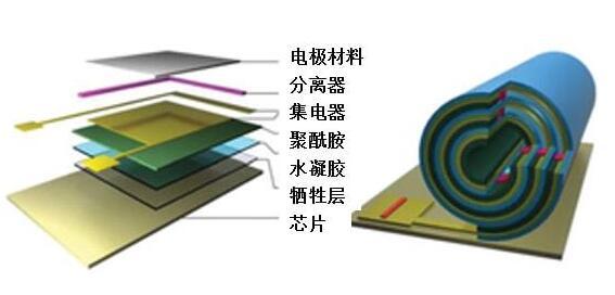 標準“瑞士卷”結構的微型電池包含至少五層的結構:兩個集電極層,一個陰極膜,一個陽極膜和一個電解質膜。如此復雜的疊加使得工藝制作變得困難。此外,“瑞士卷工藝”對薄膜的韌性等要求非常高,而且還要避免在卷起過程中帶來的電池短路等問題。