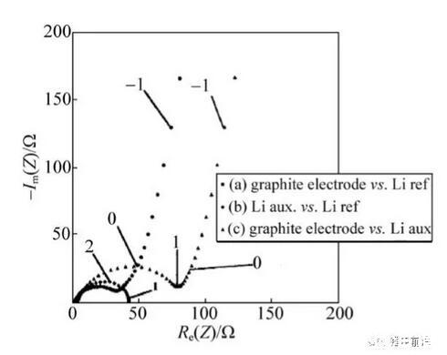 (4)兩電極阻抗等于三電極阻抗譜中正極部分和負極部分的阻抗之和;(5)電池中的阻抗可能主要來源于正極。