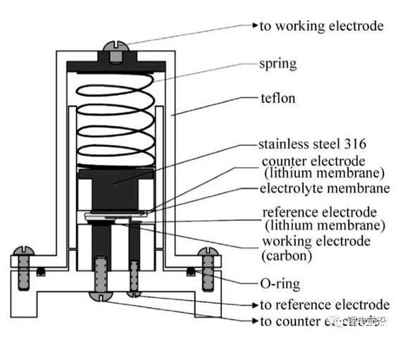 圖19三電極電池用于測試鋰離子首次潛入碳材料中的阻抗