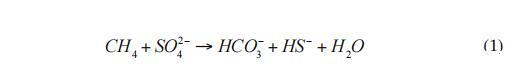 在海洋陸架和大陸邊緣,AOM活動主要出現在沉積物的上部10 m處。AOM區域(圖1)通常被稱為“底棲甲烷過濾器”(Sommer et al.2006)。AOM是由微生物聯合體介導的,這些微生物利用硫酸鹽作為電子受體。這些菌群由硫酸鹽還原菌(SRB)和厭氧甲烷營養古菌(ANME)組成(Boetius et al.2000)。AOM財團減少硫酸鹽并氧化甲烷,生成硫化物和碳酸氫鹽(方程式1):