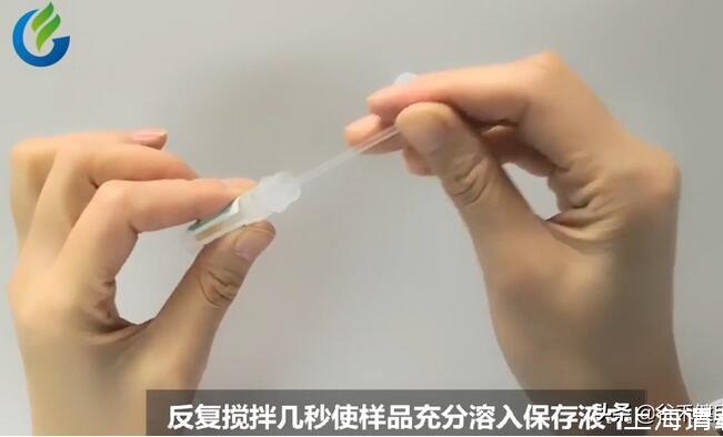 (2)樣本采集后立即將拭子置入取樣管保存液內,攪拌約30-40s,然后丟掉拭子,將管子蓋子擰好,快速搖晃取樣管至少30秒;常溫寄送。