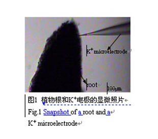 鉀是大多數(shù)植物活動細(xì)胞中含量最高的無機(jī)元素,鉀在碳水化合物代謝、呼吸作用及蛋白質(zhì)代謝中起重要作用。另外,鉀離子還是調(diào)節(jié)細(xì)胞滲透勢、平衡膜電位的最重要組分。鉀離子進(jìn)入還是逸出植物根系表面與外界環(huán)境中鉀離子的濃度有關(guān)。當(dāng)植物根尖處于低鉀(<10μmol/L)溶液中時,用K+微電極可測到K+會從根的分生區(qū)和伸長區(qū)流出,從而使所處溶液中的K+濃度到50μmol/L(Newman等1987;Ryan等1990,1992)。Ryan等(1992)用Cl-微電極研究小麥對鋁敏感和耐鋁品種根內(nèi)Cl-的流動時,觀察到在小麥根處于0.1 mmol/L的CaC12(pH4.5)介質(zhì)中時,Cl-大量地從分生區(qū)流人介質(zhì)中。