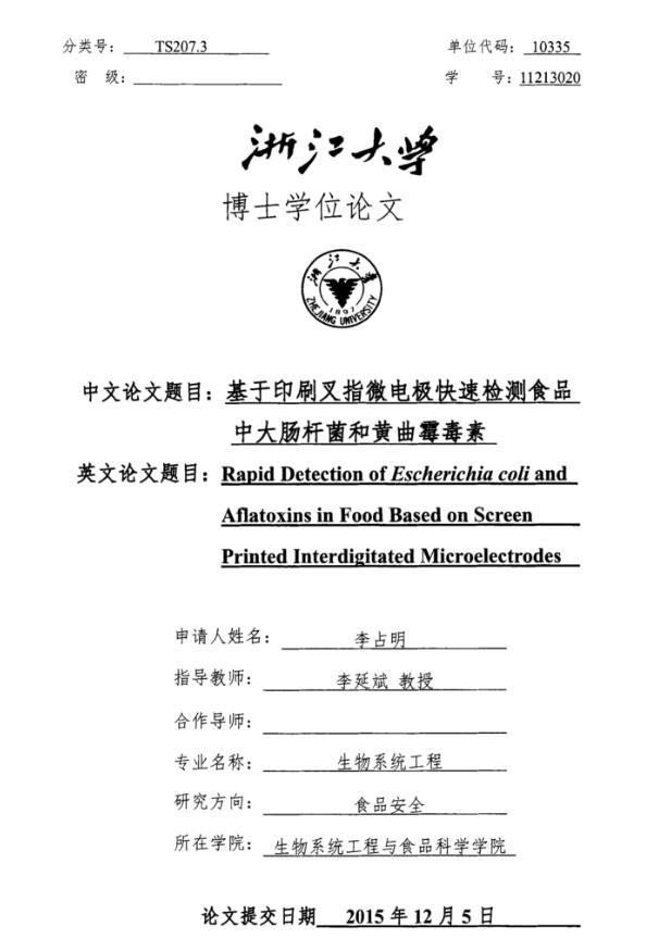 【摘要】:真菌毒素可以引起人類癌癥的發生,黃曲霉毒素B1(AFB1)是世界衛生組織認定的Ⅰ級天然致癌物質,黃曲霉毒素的污染帶來的健康危害和經濟損失已經成為備受關注的焦點問題。除此之外,以大腸桿菌0157:H7為代表的致病菌,除了對病人的健康乃至生命存在危害外,其帶來的經濟損失也極為嚴重。因此開展食品中致病菌和真菌毒素相關的研究工作具有重要意義和價值。