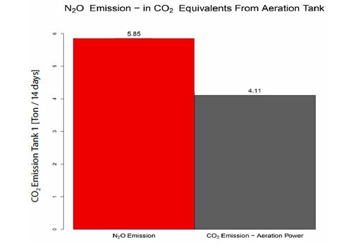 | ????? ? 最后,用同行陪審和驗證模型進行排放量的計算來評估N2O排放量,并且推斷出其二氧化碳當量。將得到的結(jié)果與曝氣得到的二氧化碳當量進行比較,然后提交給自來水公司的管理部門,作為2天咨詢服務的一部分。測量周期中總碳排放量計算為10噸二氧化碳當量,其中N2O推算出的二氧化碳當量占總排放量的59%。 |